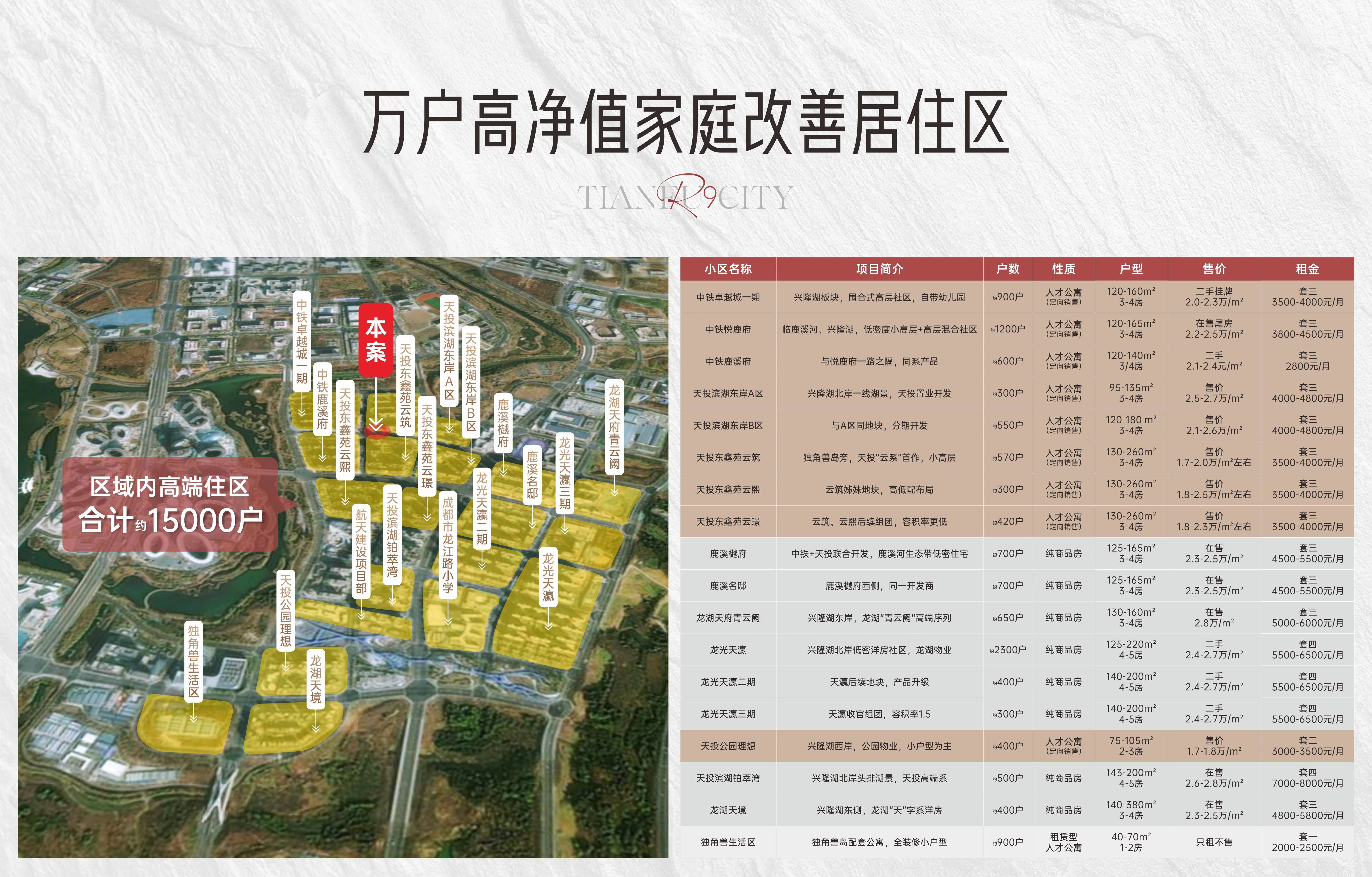 万户高净值家庭改善居住区(定向销售住宅+人才公寓)科学城住宅用地仅10%东岸占一半以上,15000户改善户型,约6万高知高消费固定人群。