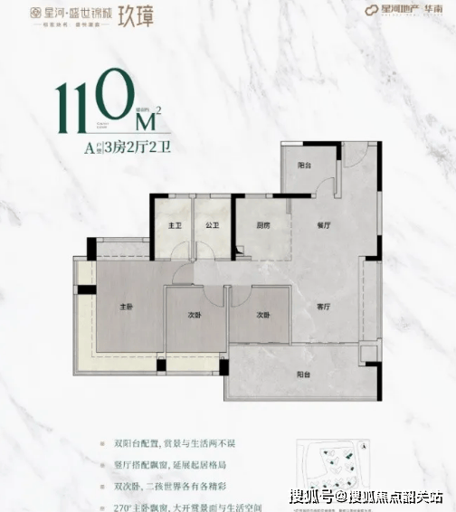 A1:目前项目主推三期【玖璋组团】,主力户型为98㎡三房、110㎡三房、128㎡四+1房,均为全新规设计,实用率达100%以上,全南向低密小高层产品。