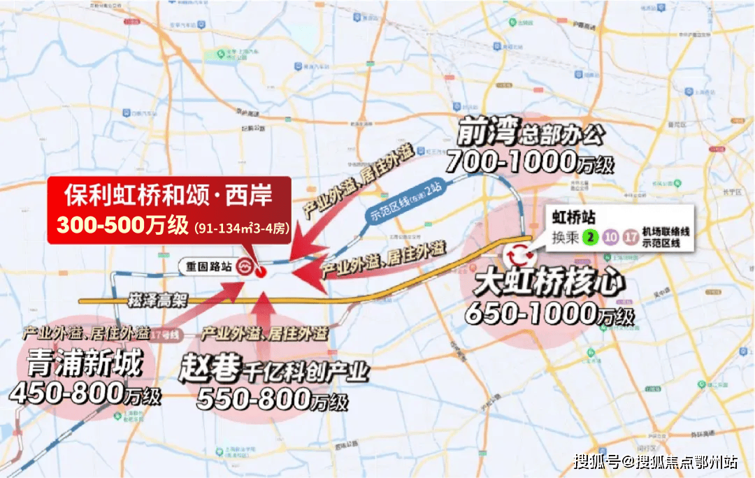 2所幼儿园、1所初中教育用地及多块教育科研用地(规划),未来将形成从幼儿园到初中的全龄优质教育6、超规格性价比:区域价值爆发前夕的置业机遇项目东面2站之隔的前湾、徐泾,房价已达700-1000万级,即便下游的青浦新城,房价也处于450-800万级