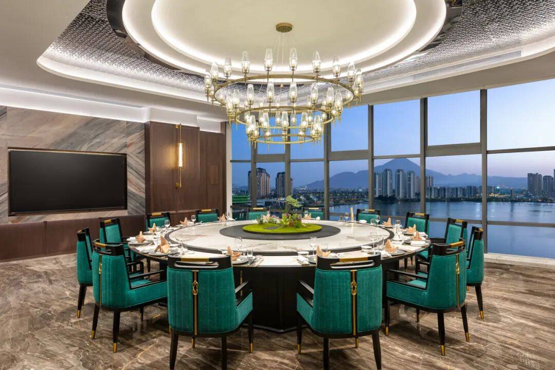 中餐厅位于酒店二楼,餐厅设有独立的不同大小间的包房,透过全幅落地窗即可沐浴惬意暖阳,美丽的玉湖面,将自然与美食并赏。星级厨师团队采用优质的食材原料,精心烹饪,打造现代与摩登的中国餐饮新体验。展示粤菜、闽菜和本地特色菜,荟萃本地时令食材,海派珍馐,带给您一抹灵活鲜动的用餐体验。
