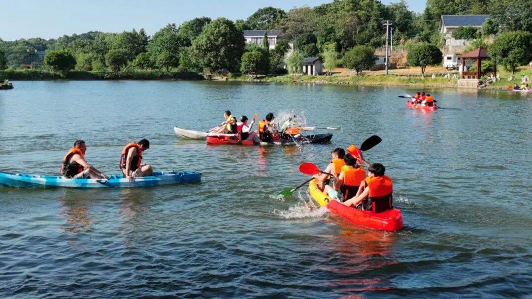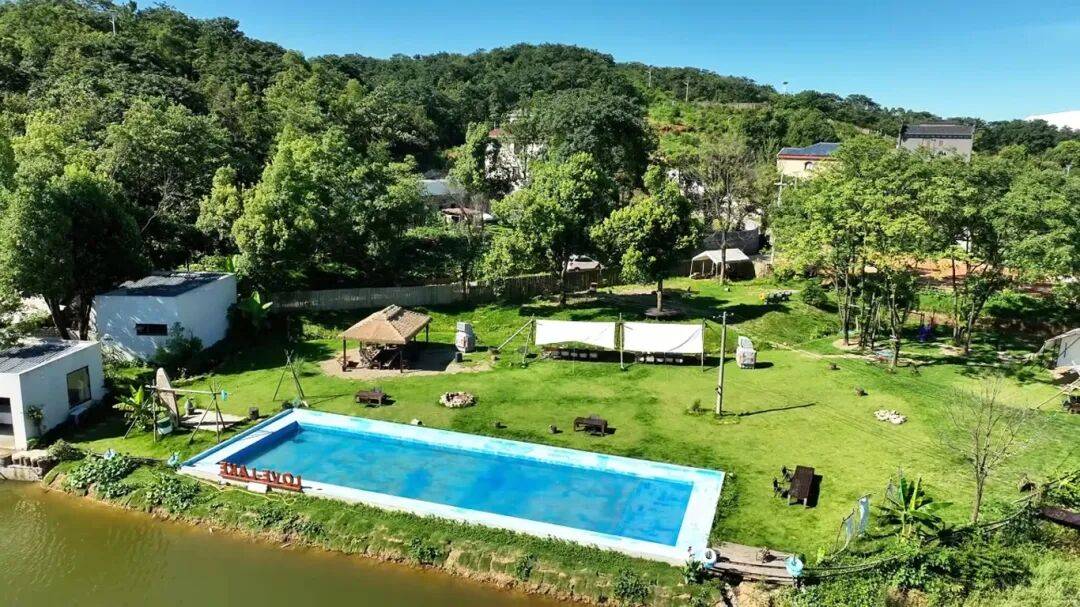 这里可以打牌、打麻将、玩飞盘、唱歌,还有临湖草坪、临湖会议室,方便组织团建,还可以开展户外露天烧烤。最有特色的是,这里有一个连接着湖水的露天泳池,拍照非常出片。此外,这里还能玩桨板、皮划艇、钓鱼,还会定期举办乐队演唱和篝火晚会。