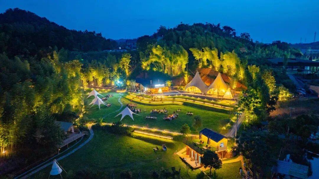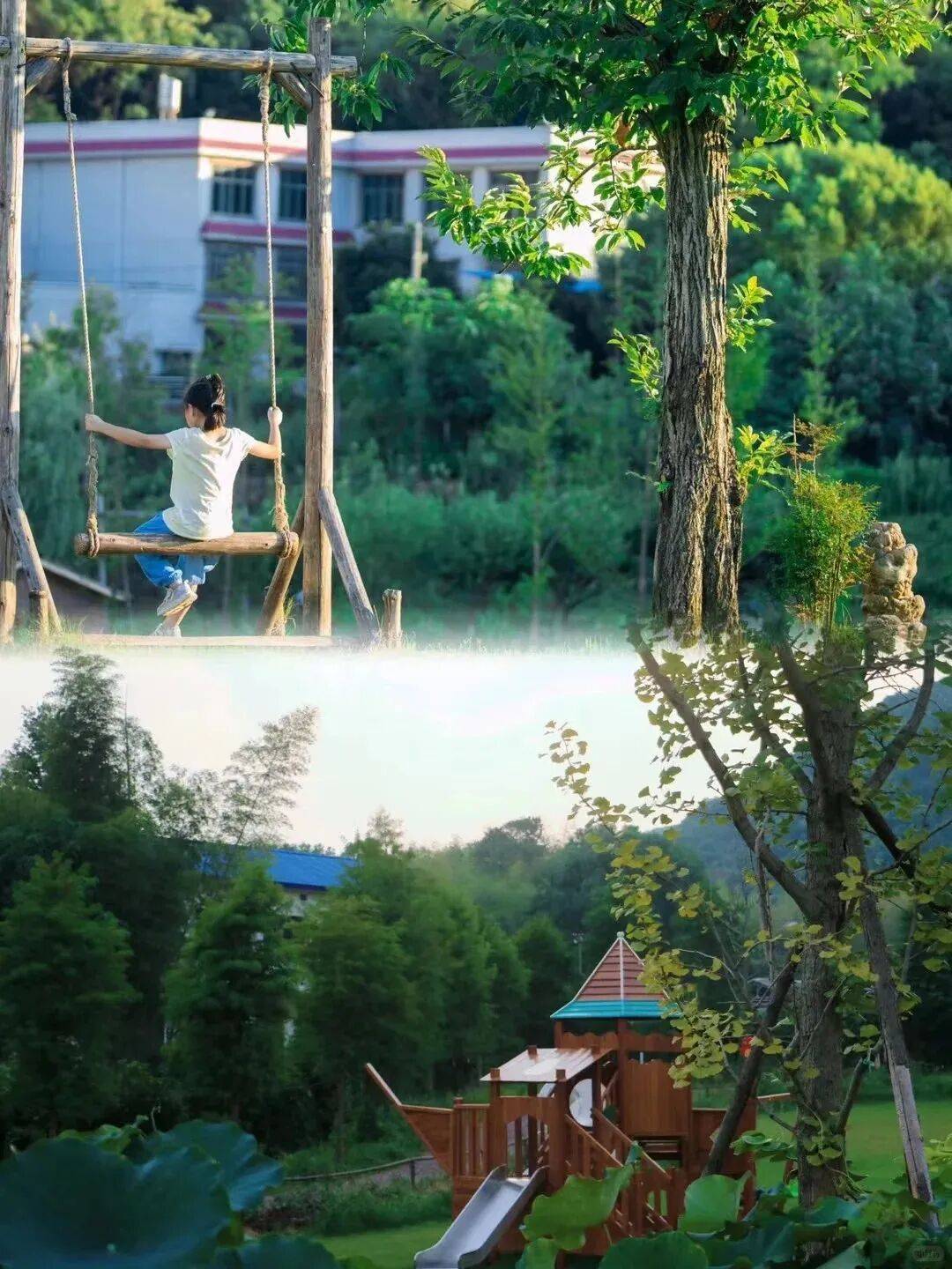 竹林秋千、苔藓文字墙、复古天幕露台处,随便一拍都很出片!此外,户外探险区域也是好评无数,有多条线路的树上探险、真人CS、碰碰球、射箭等十多个项目,同时还有钓鱼、KTV、棋牌、球类、飞盘、采摘水果等项目可选,非常全能。