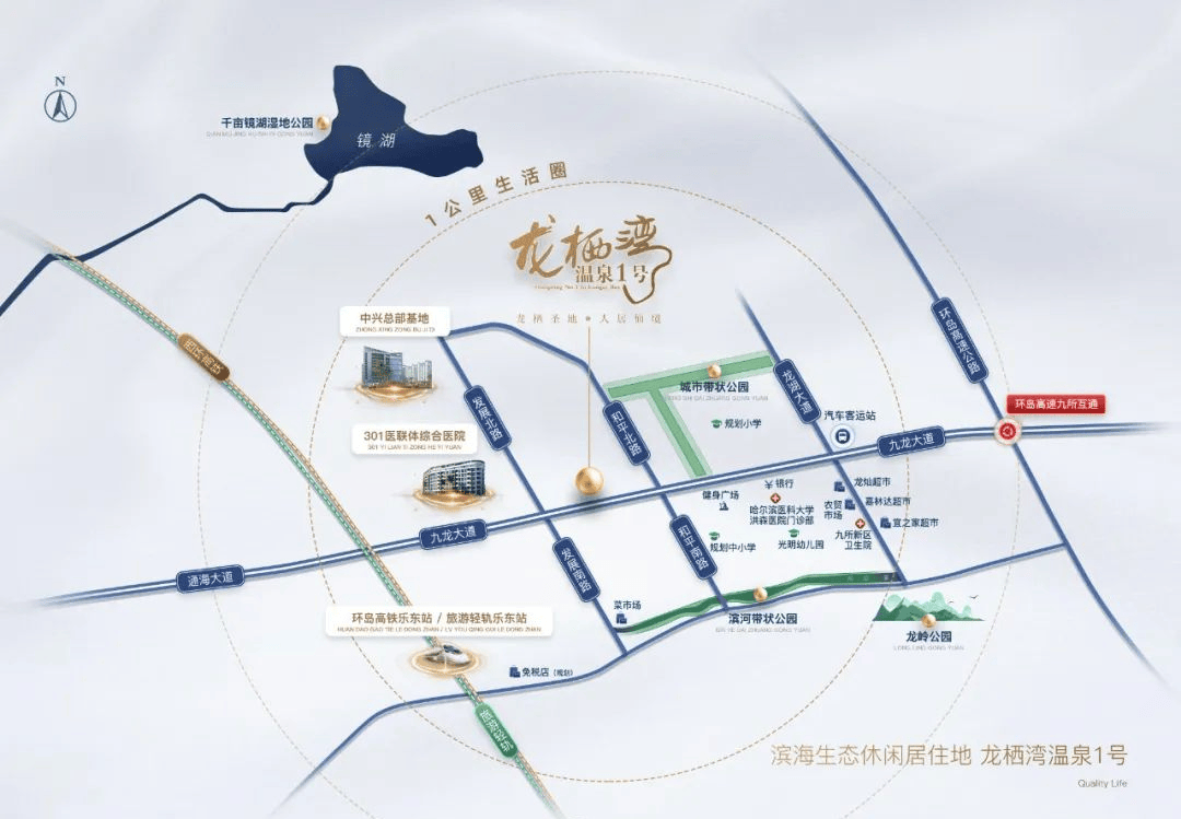 外部配套紧邻九所新区管委会、医院、市政广场、市政公园、镜湖湿地公园等,周边银行、快递、超市、酒店、美食街等生活配套齐全。