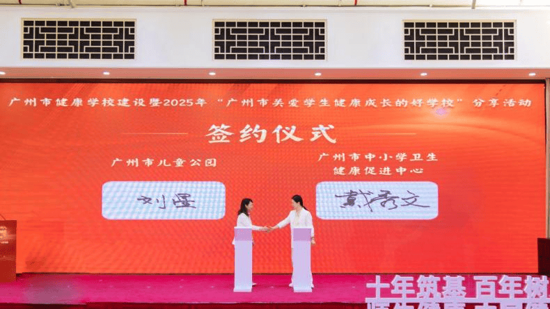 活动上,广州市中小学卫生健康促进中心与广州市儿童公园签署合作框架协议,双方将围绕学生健康科普、实践课程开展与健康资源共享等领域推进合作,探索构建“校内+校外”有效衔接的健康育人体系,实现教育资源与社会资源的有机融合与共享发展,为孩子们的健康成长提供更广阔的空间,共同助力广州儿童友好城市建设。