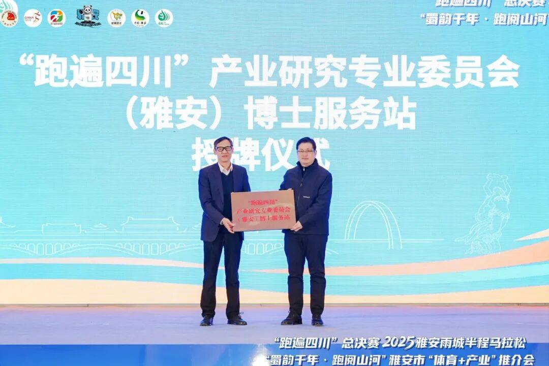 会上,“跑遍四川”产业研究专业委员会进行发布,西南财经大学党委常委、副校长桂富强为“跑遍四川”产业研究专业委员会(雅安)博士服务站授牌,雨城区委书记陈建伟接牌。