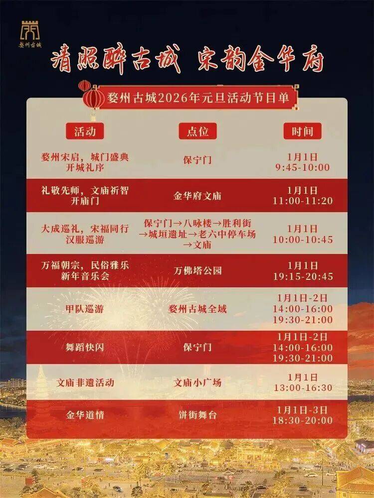 假期期间,婺州古城内各类活动依旧多姿多彩。晨起观“开城礼序”,感受古城庄严;午时赴文庙祈福,祈愿新年顺遂;午后体验非遗手作,印福馍、写春联,亲手传递温暖;入夜万佛塔下,国乐悠扬,意境典雅。更有汉服队伍巡游穿行,在欢声祝福中,共迎新春。