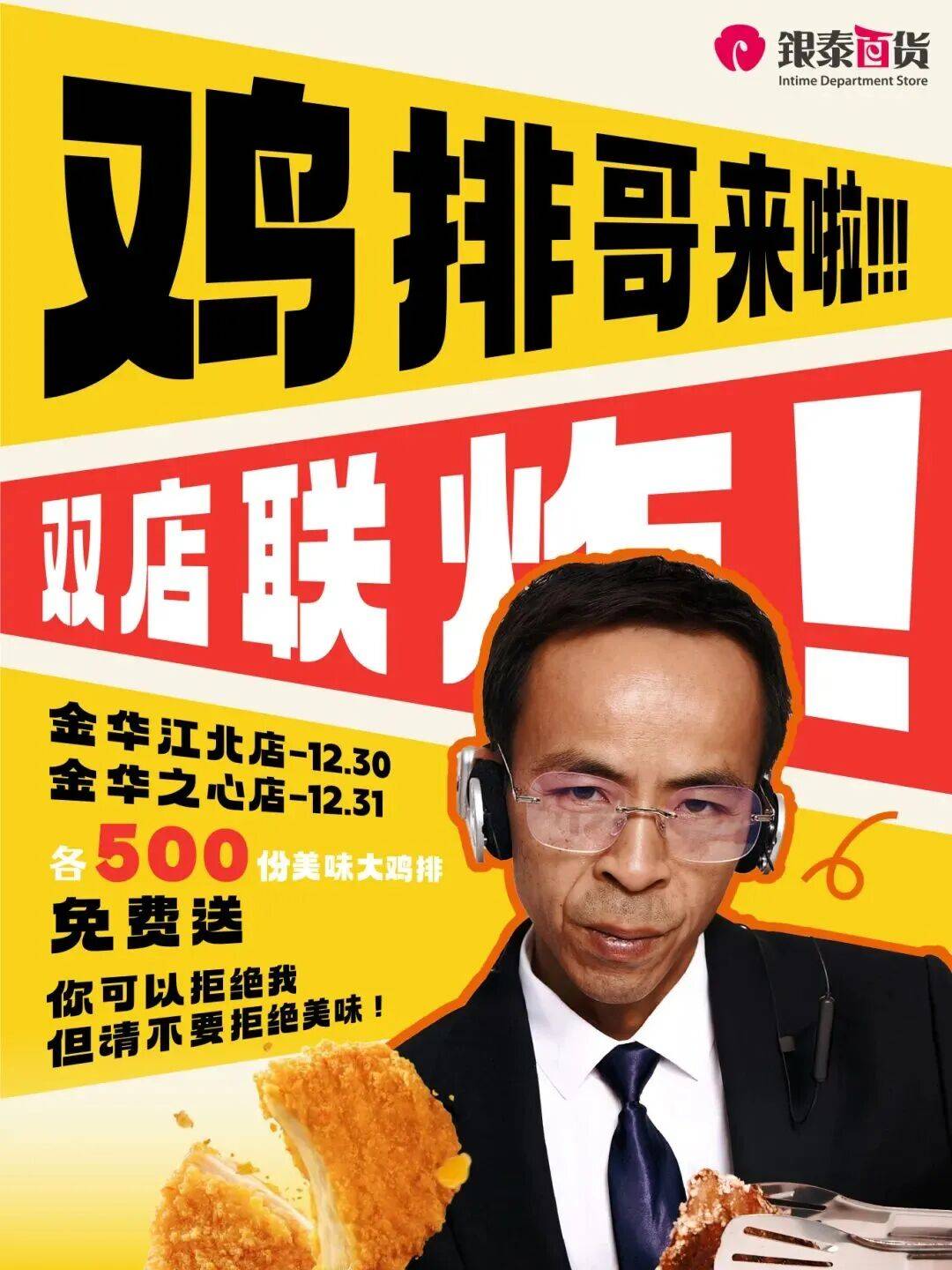 这个年尾,凭借一系列幽默经典的金句出圈的“鸡排哥”“全国巡炸”来到了金华。12月30日10:30-15:00,市民游客可以前往江北银泰百货A馆5楼李宁专柜门口提前领取手环。