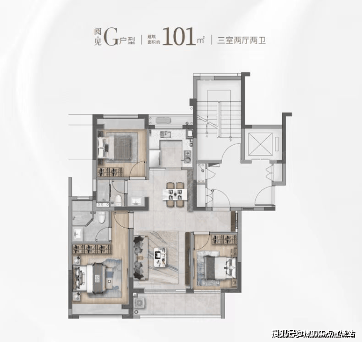 松江洞泾新城板块地铁9/12号线双轨交盘【华发·海上都荟】加推建面约91~102㎡3房户型