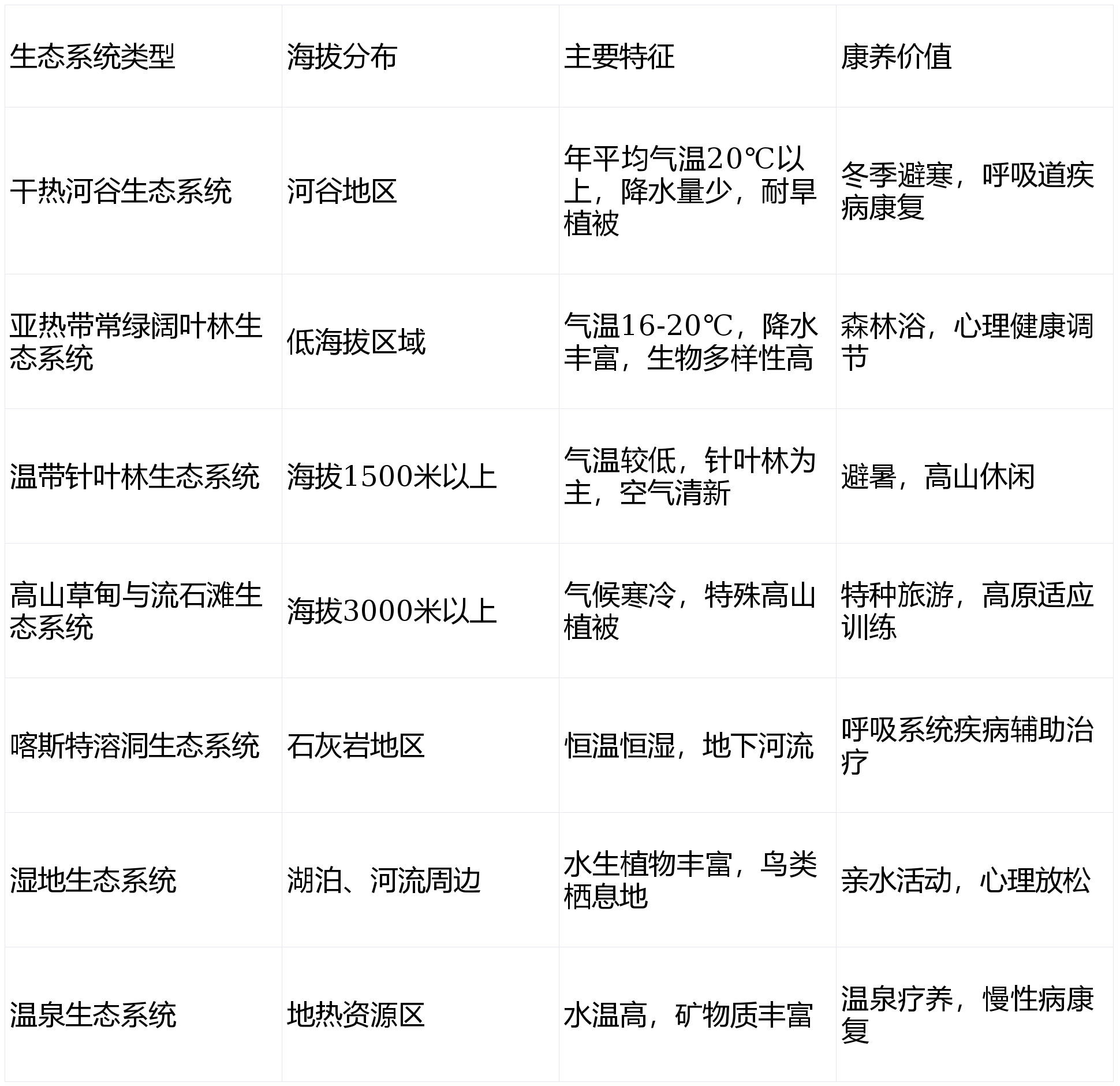 从生态系统多样性来看,攀西拥有从干热河谷到高山草甸的垂直生态系统谱系,这种多样性为生态康养提供了多维度的自然环境支持。具体而言,攀西的生态系统主要包括以下类型。