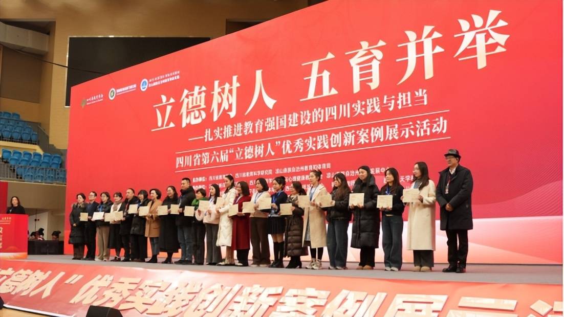 闭幕式上,四川省教育学会副会长、秘书长牛琴在主持颁奖仪式时介绍:2025年四川省第七届立德树人优秀实践创新案例共收到申报案例9356个,最终评选出获奖案例5530个,其中一等奖954个,二等奖1825个,三等奖2751个。大会邀请现场嘉宾为一等奖获奖代表颁奖。