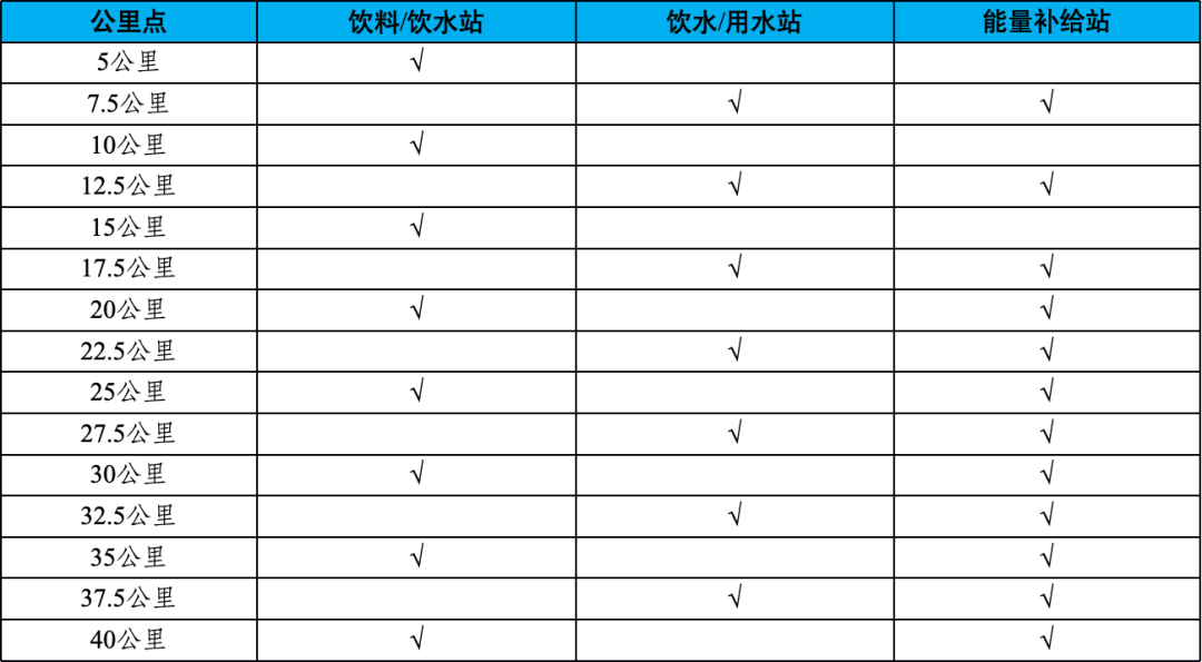精英运动员可在赛前一天的指定时间及地点提交自备饮料,并在比赛时在相应站点拿取自备饮料,自备饮料按规定要求公里点位的设置摆放,详细设置将在技术会议中公布。